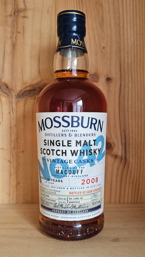Mossburn Vintage Casks No 42 MacDuff 2008 is a third-party bottling of Highland Single Malt Whisky. It is part of Mossburn’s Vintage Casks range, a collection of Single Malt Scotch Whiskies each issuing from a strictly limited and select batch of casks.
