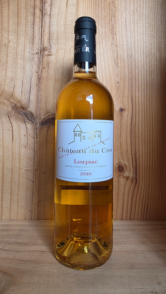 Château du Cros Loupiac is a luscious, sweet white dessert wine from the Bordeaux wine-growing region. It is made from a late-harvested, noble rot affected blend of Semillon, Sauvignon and Muscadelle. Wines from the region offer an excellent alternative to Sauternes which is located on the opposite bank of the Garonne.