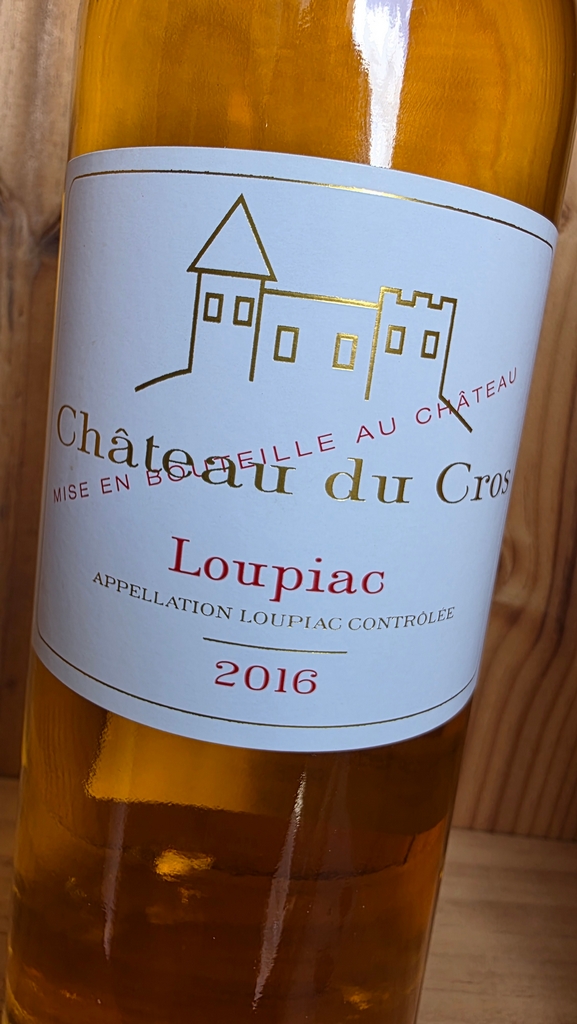 Chateau du Cros Loupiac has a brilliant, light golden yellow colour. The nose is complex and aromatic with aromas of peach, apricot, citrus, acacia and a slight hint of toasty oak. The palate is very sweet but with good acidity so that the wine is not cloying. There are toasty oak notes from the barrel ageing but the palate is dominated by apricot and plum with some candied, honey character beginning to develop. It has a very long, lingering finish with great subtlety and elegance.