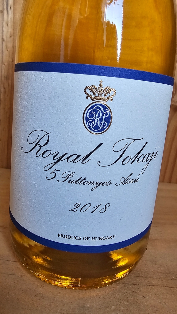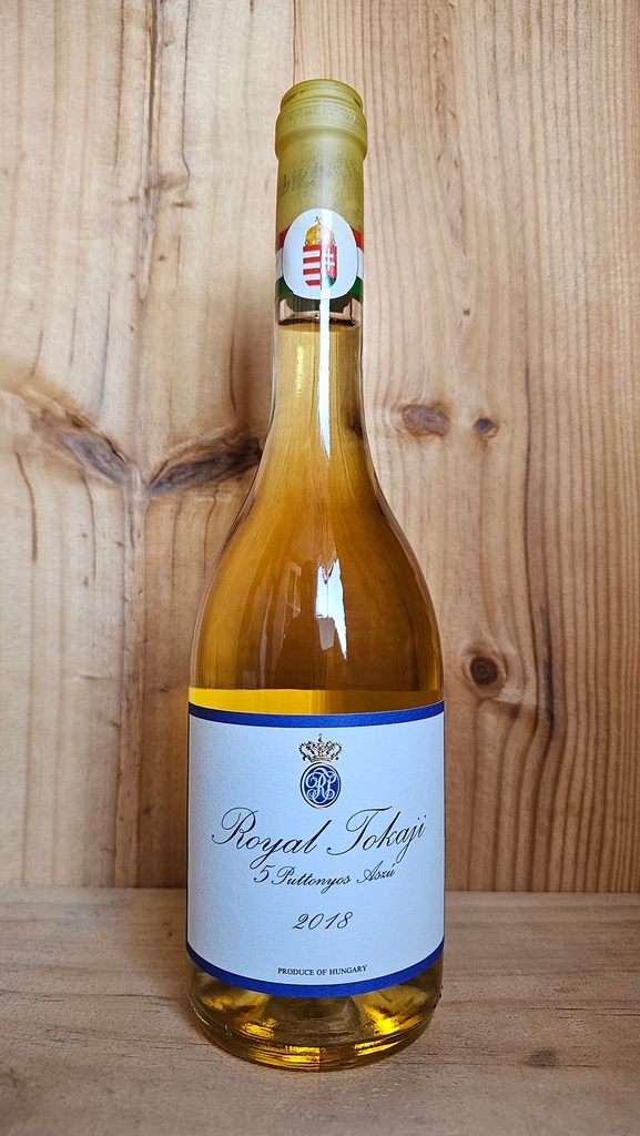Royal Tokaji 5 Puttonyos Aszu Blue Label Tokay has an intense nose with lots of fruitiness and spice. Great structure and vibrant freshness with flavours of white peach and ripe plums, a perfect balance of richness, crisp acidity and a long finish. Great structure, plenty of botrytis, depth and freshness with excellent complexity, all attributes of long ageing potential.