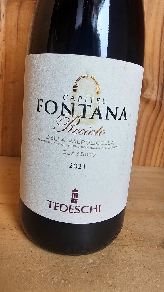Tedeschi Capitel Fontana Recioto della Valpolicella is excellent served on its own as a meditative dessert wine, perfect for quiet contemplation after dinner.